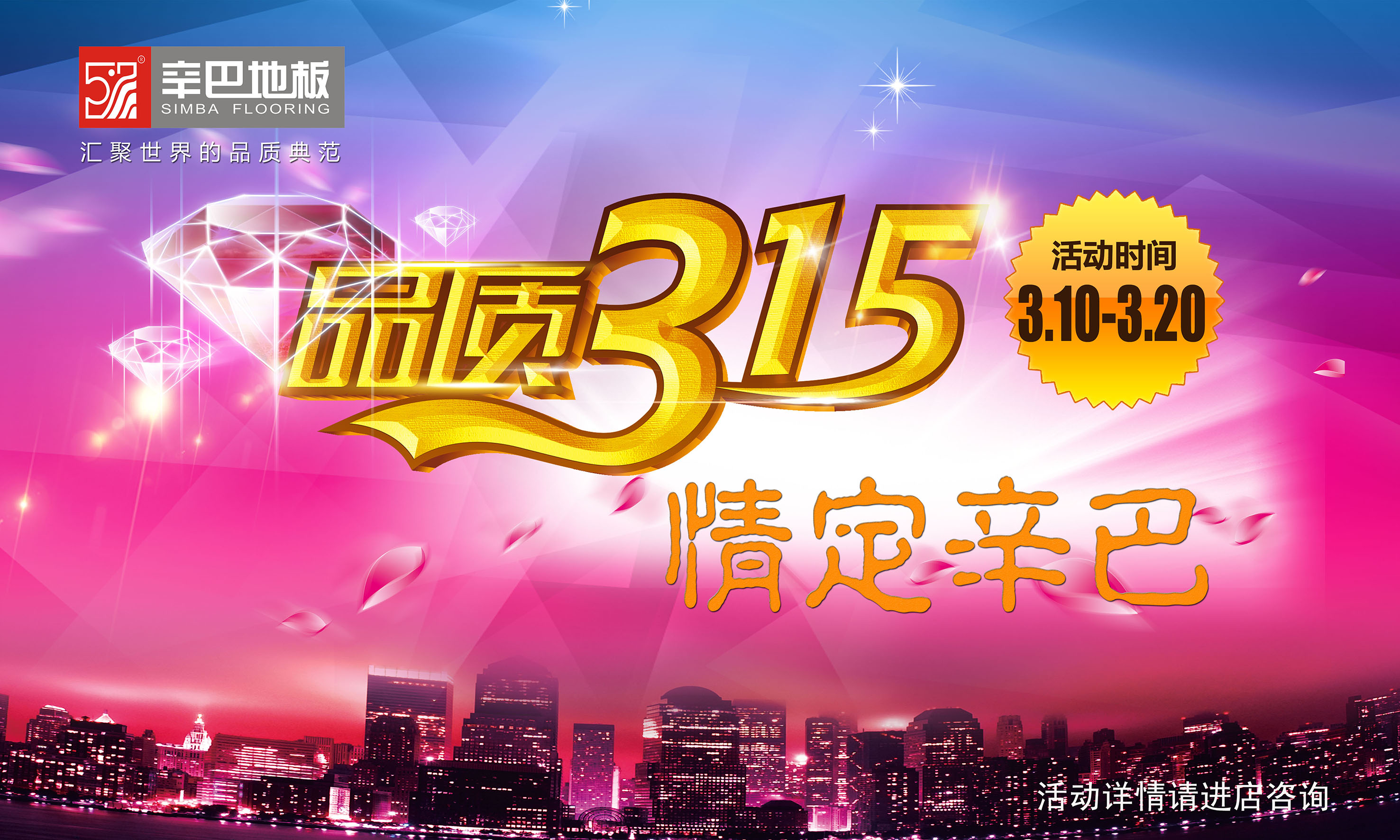 315是国际消费者权益日,目的在于扩大消费者权益保护的宣传,使之在世界范围内得到重视,促进各国和地区消费者组织之间的合作与交往,在国际范围内更好地保护消费者权益。 对于家装建材行业来说,315也是个很好宣传、促销自家品牌的时机,辛巴地板也不例外。辛巴认为在搞好活动的基础上,一定要把质量问题提升,只有好的产品顾...