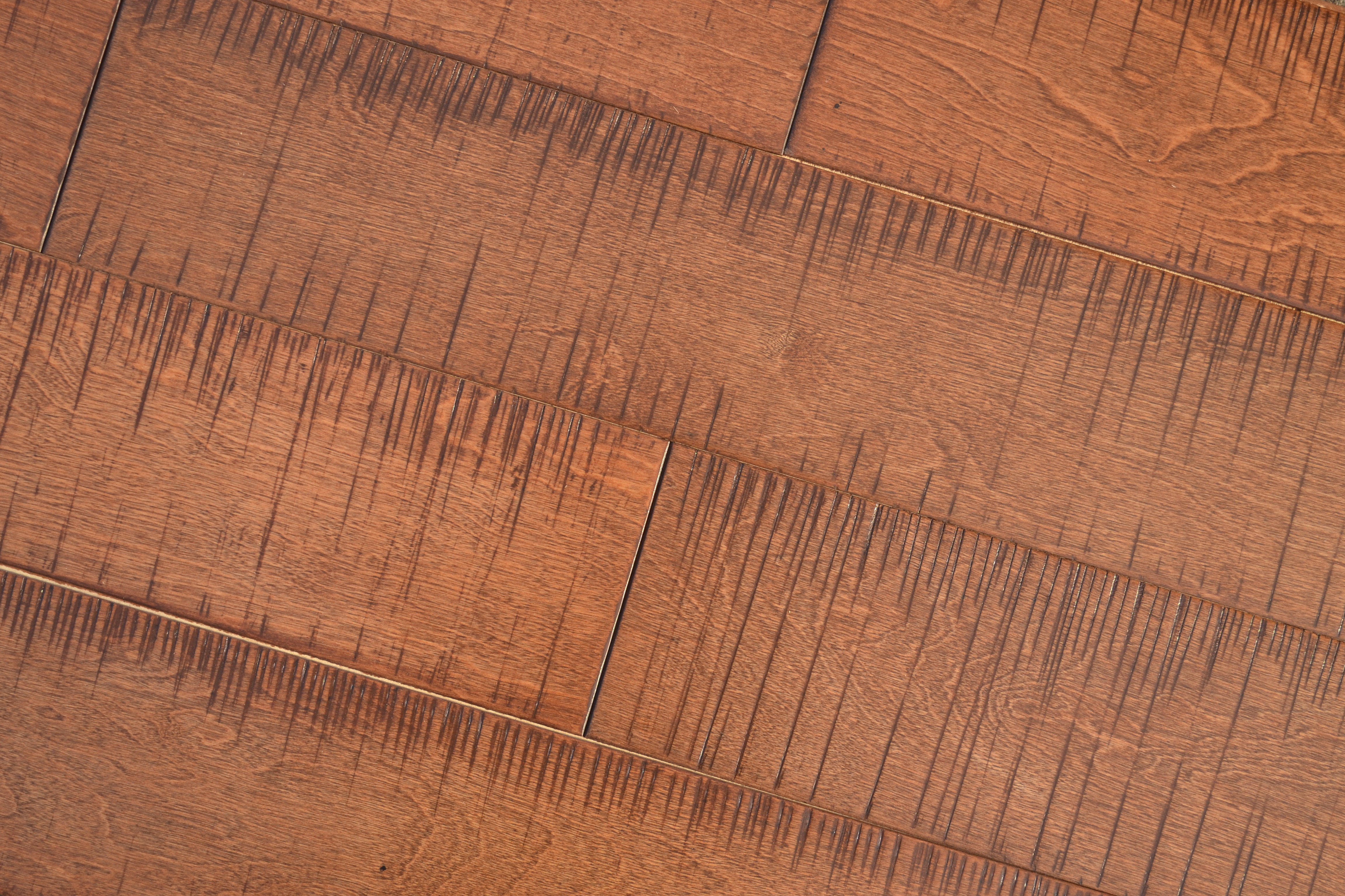 桦木本身的硬度比较高,配上砍刀纹工艺,使地板添加了一种不一样的美。